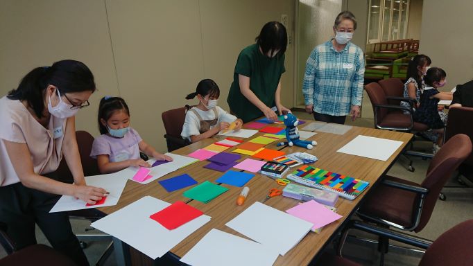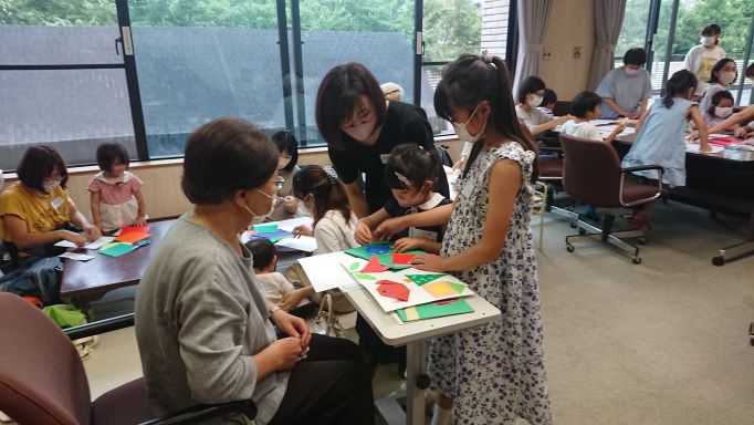 折り紙と カラーペン・くれよんを使って、